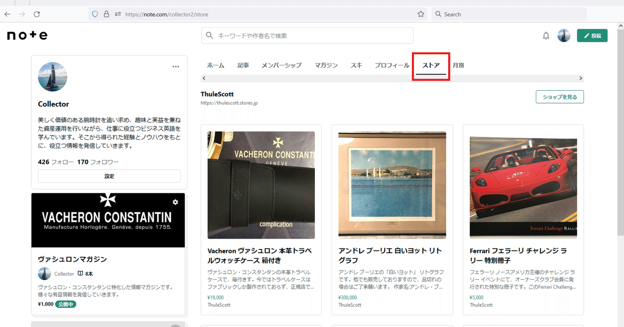 ストア機能を使用することで、対象のいずれかのプラットフォームで商品を販売しているクリエイターは、自分のnoteに商品を一覧表示するページをつくることができます。